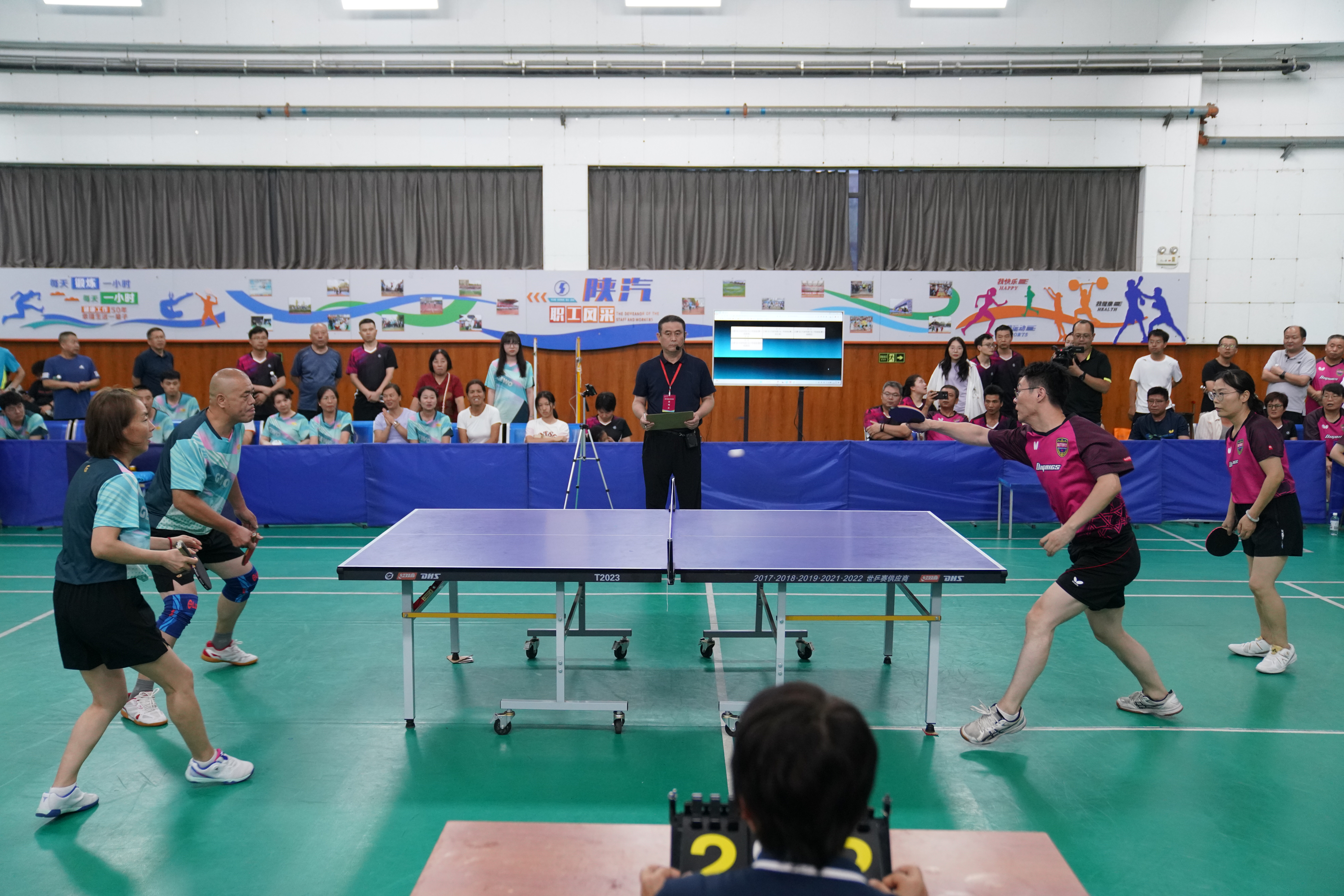 赛场上,运动员们精神饱满、斗志昂扬,提拉反杀、攻守兼备、反击迅猛,侧旋球、下旋球、扣球等各项球技展现的淋漓尽致,赢得了现场观众阵阵喝彩与热烈掌声。运动员们不仅展现了精湛的球技,更充分彰显了陕汽人敢打敢拼、团结协作、奋勇争先的良好精神风貌。